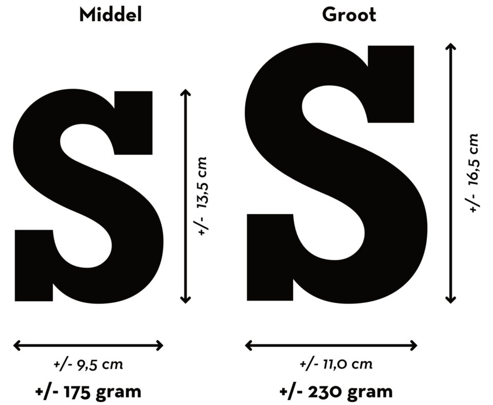 Onze handgemaakte luxe chocoladeletters maken we helemaal zelf van 100% Callebaut chocolade in twee formaten: Middel en Groot. We hebben de letters in melk, puur én wit.