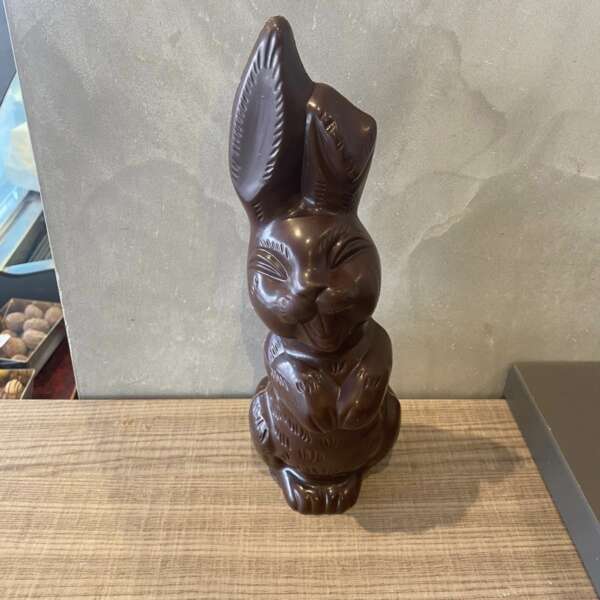 In een half ei van chocolade liggen diverse paaseitjes opgesteld. Letterlijk en figuurlijk een lekker schaaltje voor op tafel