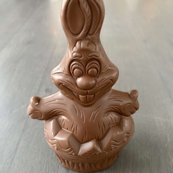 Holfiguur: haas met ei op de buik